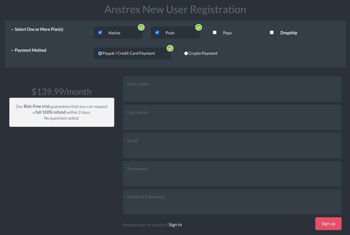 Use the link Anstrex Coupon to create an Anstrex account.